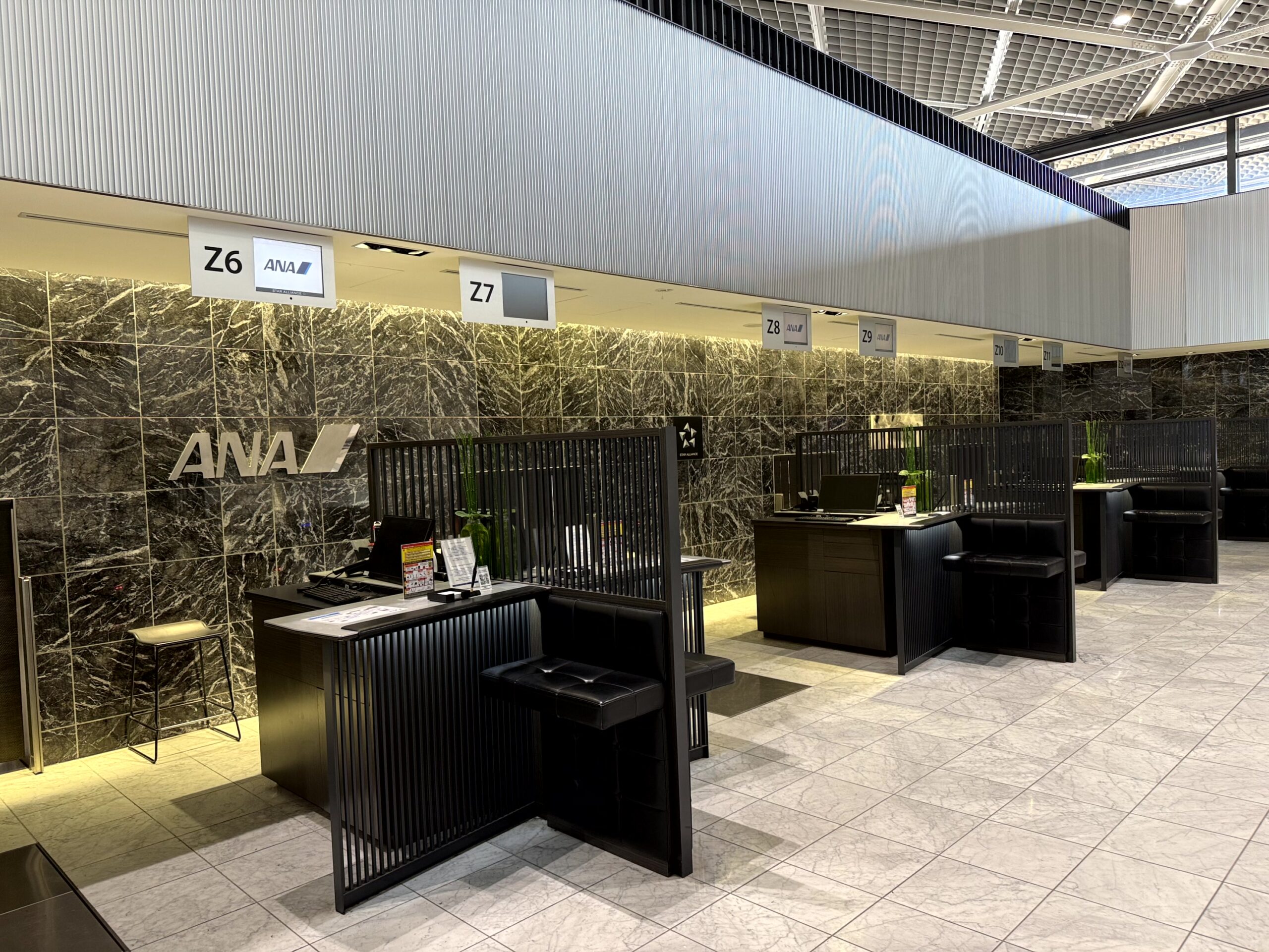 成田空港ではZカウンターでチェックインを行いました。ここはファーストクラス利用者とANAダイヤモンド会員のみが利用できる特別な空間です。