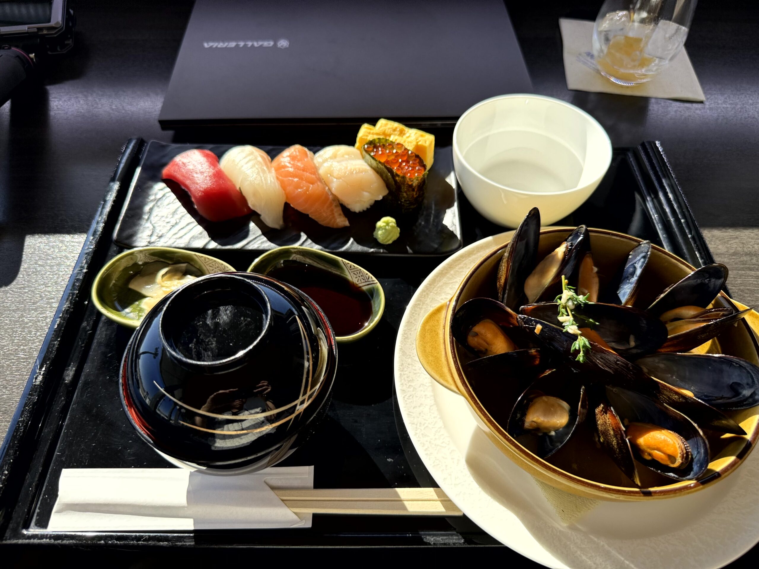 このあとファーストクラス機内でも豪華なお料理が出ると分かっていながら、ついラウンジ内で食べすぎてしまいました。