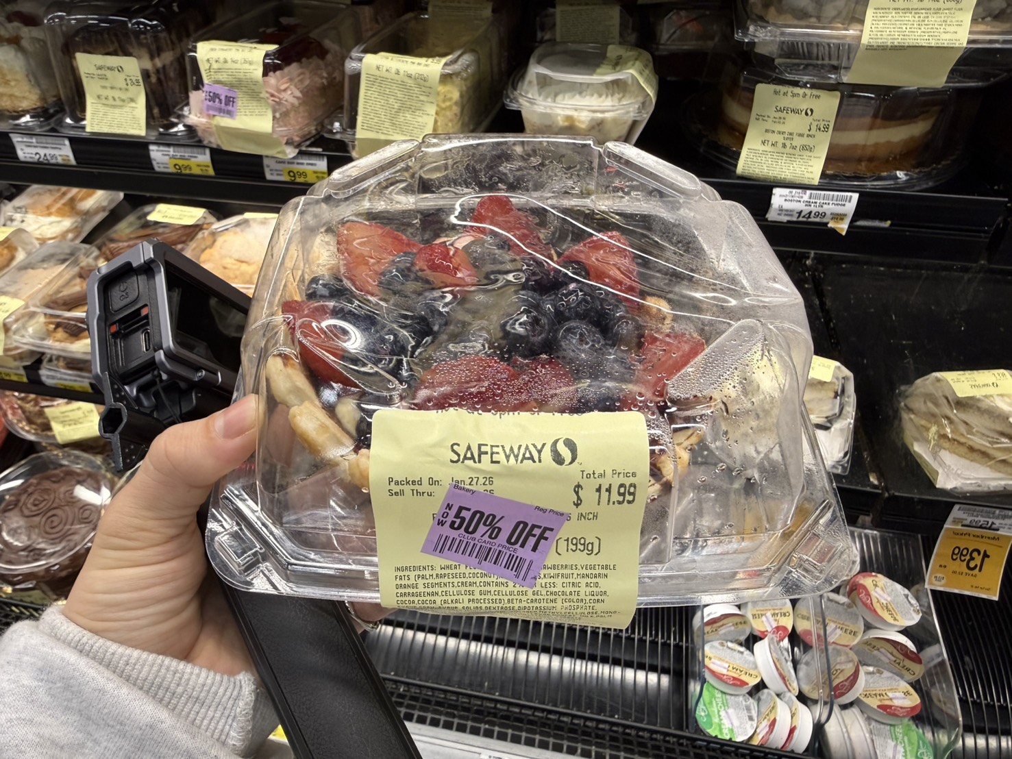 世界一周初日、ファーストクラスで渡米しながらスーパーで半額シールを真剣に探している27歳。夢と現実のバランスはだいたいこのくらいがちょうどいいのかもしれません。