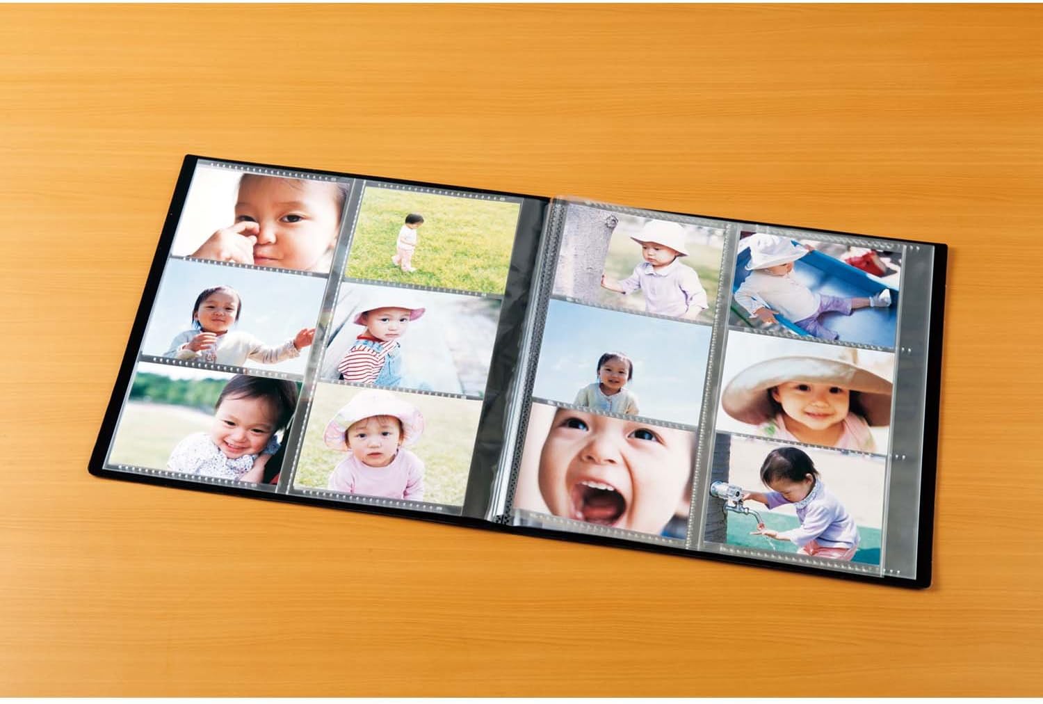 透明なポケットに写真を入れるだけでいいので、簡単に収納が可能です。